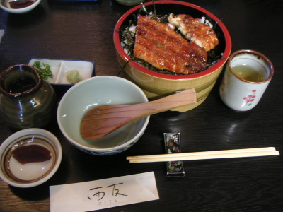 | 名店「西友(にしとも)」のウナギでございます。注文から時間がかかるのが難点でございますが、何度来ても美味でございます。 |