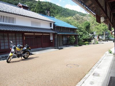 鯖街道・熊川宿にて休憩でございます。「宿場町ヲタ」の私ケロリン、宿場内をバイクで散策。なかなか風情があってエエ感じでございます。
