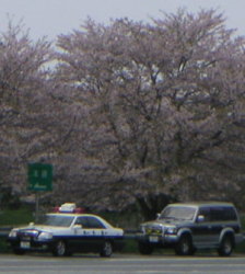 | 穏やかな天気、大阪では散ってしまった桜も眺めつつ走る高速道路は快適で、今が交通安全週間である事を忘れてしまうが、途中レーダー取締中のパトがーがいて1台車が餌食になっていた。 |