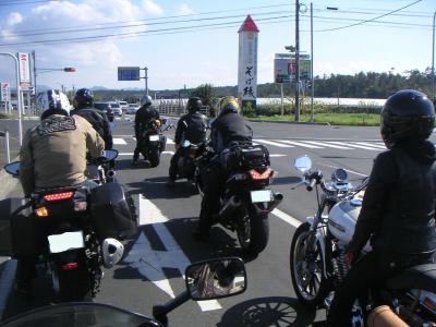 久しぶりの再会・・・。今回個人的には九州の姫さんにお会いする事をとても楽しみにしていた。なにしろひまわり組結成当初からの仲間で、お会いするのは8年振り。その九州の姫さんとは、土砂降りの雨の都井岬ツーリングで並いる男共を豪快に抜き去るテクニックと度胸の持ち主(しかも笑顔で。勿論私もあっという間に置き去りにされた一人である)。かつ夜の宴会は誰よりも元気で素晴らしきムードメーカー。私の中では、「姫さん」というよりは「姐さん」という感じで、九州時代からその人柄をお慕いしていた。・・・その姫さんは、ハーレーに跨り颯爽と登場。服装もビシッと決めている。第一声で思わず「・・・姫さん、ワイルドになりましたね・・・」。ムッとする姫(苦笑)。その格好良さに思わず出た言葉、お許し下さい。