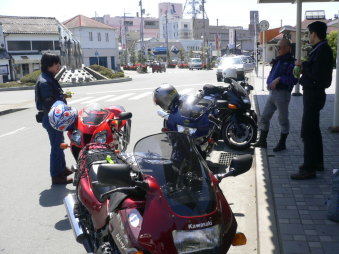 国道197号線をひた走ること30分。ようやく須崎市内へ入った。「道の駅・すさき」で小休止し、近所のスーパーに酒やつまみの買い出しに出かける。買い出しはサポートカー組が快く引き受けてくれたので、バイク部隊はとりあえず帰りを待つことにする。そんな中でプチ走行会を開催。ミミオは忍者親分が丹精込めて手を入れたGPZ900Rを、Mr.TはQ太郎さんのZZ−Rや銀凧さんのTRX850にも食指が動いたのだが、大型二輪免許がない(役人という立場上、もしも免許違反で事故でもやらかした場合は失職しかねない。これマジな話・・)ので、おさむさんのCB400SFをお借りした。実はCB400SFをお借りしたのは免許の関係だけではない。車齢からして、車検をあと2回くらい通すのが限界だろうと思われる我がEX−4の後継候補がCB400SFのカウルつきモデルである「CB400スーパーボルドール」なのである。確か二輪免許を取ったときの検定車が初代CB400SFだったと思うので、実に12年ぶりに跨ることになる。