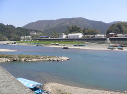大洲が「伊予の小京都」と呼ばれていることは先述のとおりであるが、この町にはもう一つの顔がある。実は1991年初めに爆発的な視聴率を記録したドラマ「東京ラブストーリー」のロケ地なのである。主人公「カンチ」のふるさとがこの大洲の町という設定で、肱川沿いや大洲神社、旧市街等で撮影が行われた。当時はたいそう話題になり、観光客が押しかけたそうである。余談であるが、私Mr.Tも、1993年の春にアルバイト先の学習塾の生徒を「卒業旅行」に連れてきた。大洲、久万、梅津寺等々全てのロケ地を1日で回った卒業旅行。彼らとは12年たった今でも交流があるのだが、授業よりも「卒業旅行」の方が強く印象に残っているという(いいんだか悪いんだか・・・笑)。 ←肱川沿い。主人公「カンチ」と「リカ」はこの対岸を肩を並べて仲良く歩いた。 |
