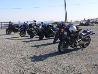 戦に敗れたMr.T、マイペース(といってもバイクの寝かせ具合からしてそれなりのスピードは出ていたと思うが・・・)で四国の雄大な風景を堪能する。「やはり四国はエエなぁ・・・」と思いながら走ること約5キロ。路肩にMr.Tをちぎっていった3台のバイクが停車している。トラブルでもあったのかと思い、慌てて駆け寄ると、「疲れた・・・年寄りにはきついわ・・・」とのこと。さらにしばらくしてやってきたミミオ曰く、「誰か前で事故ってないかとハラハラした」と。この一言が、炎のバトルの壮絶さを端的にあらわしていた・・・(汗)。