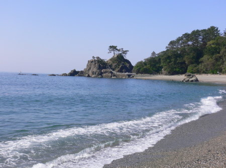 続いて向かったのが「浜」である。よくテレビや絵葉書ではよく見る光景であるが、生で見るとこれまた素晴らしい。今日も雲ひとつない快晴。いい写真が撮れた。 ←桂浜。これもやはり絶景。 |