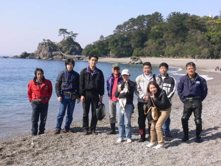ここでも皆で記念撮影。Mr.Tが持ってきたフィルムカメラ「コンタックス・アリア」のフィルムもちょうどここで終了。さて、どんな写真に仕上がっているやら・・・。非常に楽しみである。 ←桂浜にて記念撮影。これもまたよき思い出の1ページ・・・。 |