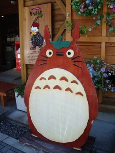 ここは一見何の変哲もない田舎の道の駅であるが、なぜか「どんぐり共和国」があり、トトログッズがたくさん売られていた。店先には大きなトトロの立て看板。妙に親近感を覚えてしまった。うわさによれば、ここの野菜は抜群に質が良く、田舎うどんがかなり美味らしいが、時間がないので諦めた。ミミオがいつの間にか「めはり寿司」を買ってきていたので1つ恵んでもらう。 ←Mr.Tの弟 |