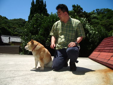 バイクを停めようと駐車場の奥へ向かうと、1匹の犬がいた。逃げはしないが愛想をふりまくでも尻尾を振るでもない。ボテッとした風貌、無表情で無愛想・・・。まるで私のコピーではないか・・・。何かうれしくなってツーショット写真を撮ろうとしたら、シャッターが切れる直前にプイとそっぽを向かれた。そのタイミングといい仕草といい、まさに私なのである。犬を取り囲んでワイワイとその話題で盛り上がっていたら、無表情でどこかへと消え去っていった。 |