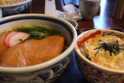 無事(?)に合流できたところで昼食タイムといきましょう! 大判きつねうどんとミニ親子丼のセット。久々に「さぬき」じゃない普通のうどんを食べたような気がします(笑) なかなか美味しいきつねうどんでしたよ(*^^)v |