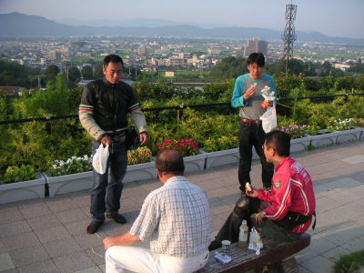 | 皆ヤッシャー氏の登場に驚いている。今回は仕事と家庭の都合がうまく合って久しぶりに参加できた、との事。この第一集合場所ではとみきち氏、Rip氏、はるさん、丸さん、ヤッシャー氏に私の計6名が集合。Tからはメールが入る。「忘れ物をしたので”しらまの里”で合流する」との事。完璧主義のTにしては非常に珍しい出来事だ。また、和歌山在住のうえぽん氏からメールが入り、ツーリング参加はできないが海南東ICでお見送りしてくれるとの事。もう一息入れたいRip氏を置いて、本体の5名は一路海南を目指し出発。 |