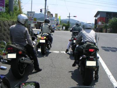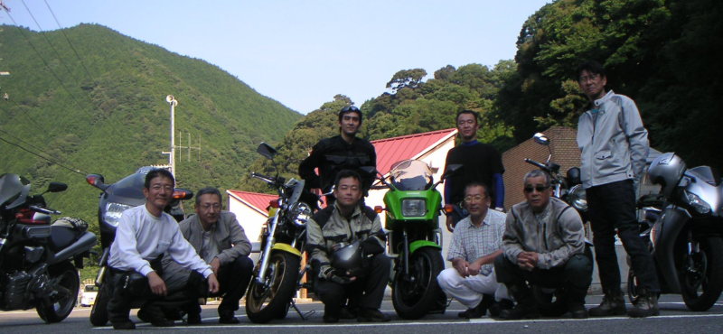 ここで大阪に引き返すヤッシャー氏に見送られ7名で再び424号を南下する。この道はあまり有名ではないが中高速の快走路。しかも年々整備されて走り易くなっている。白バイ情報を聞いていたので最初こそ遠慮していたが、気がついたらかなりのご機嫌なペースで走っていた。